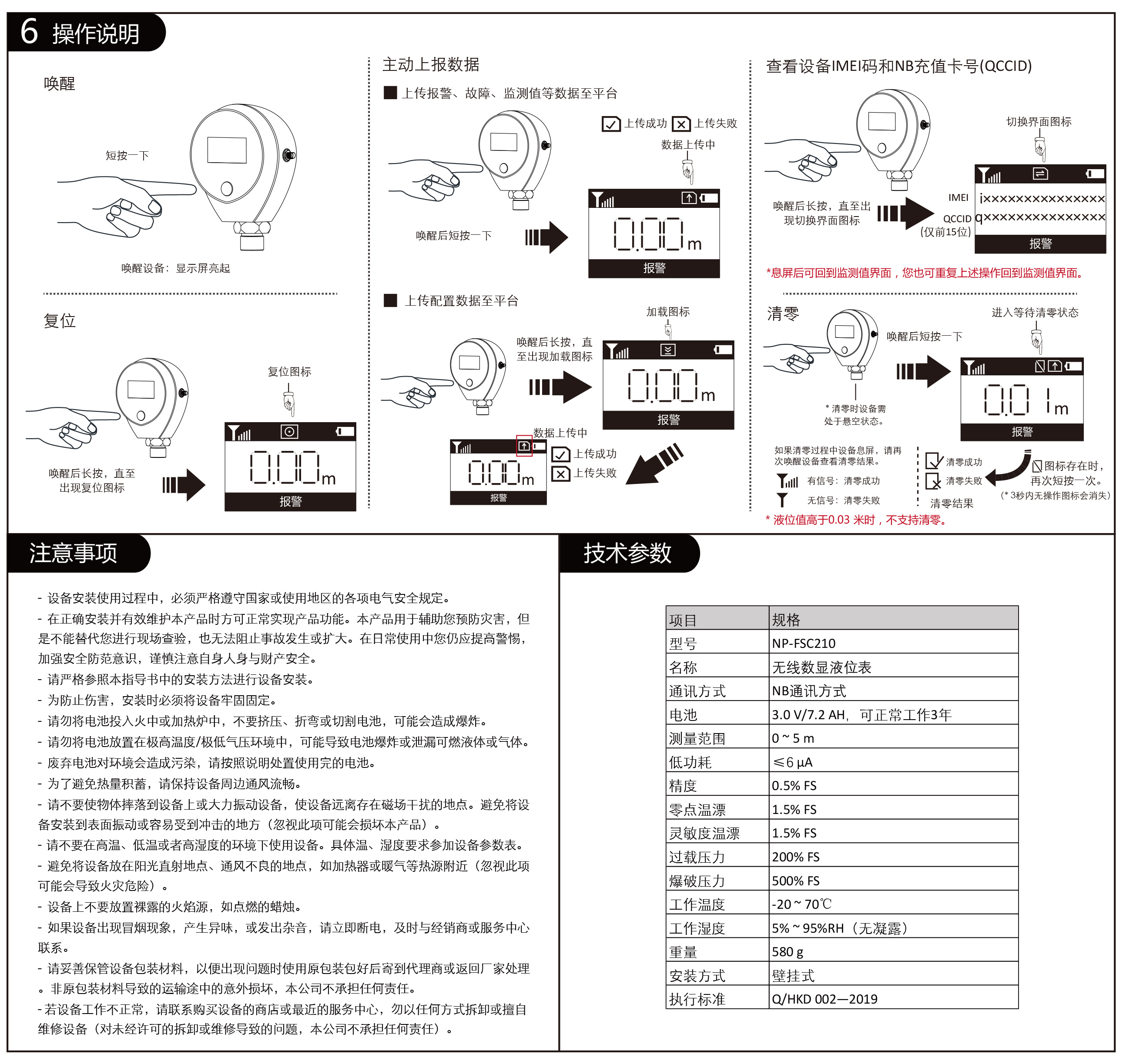 ? LED屏幕顯示電池電量、信號強度、液位值、設 備當前狀態等。